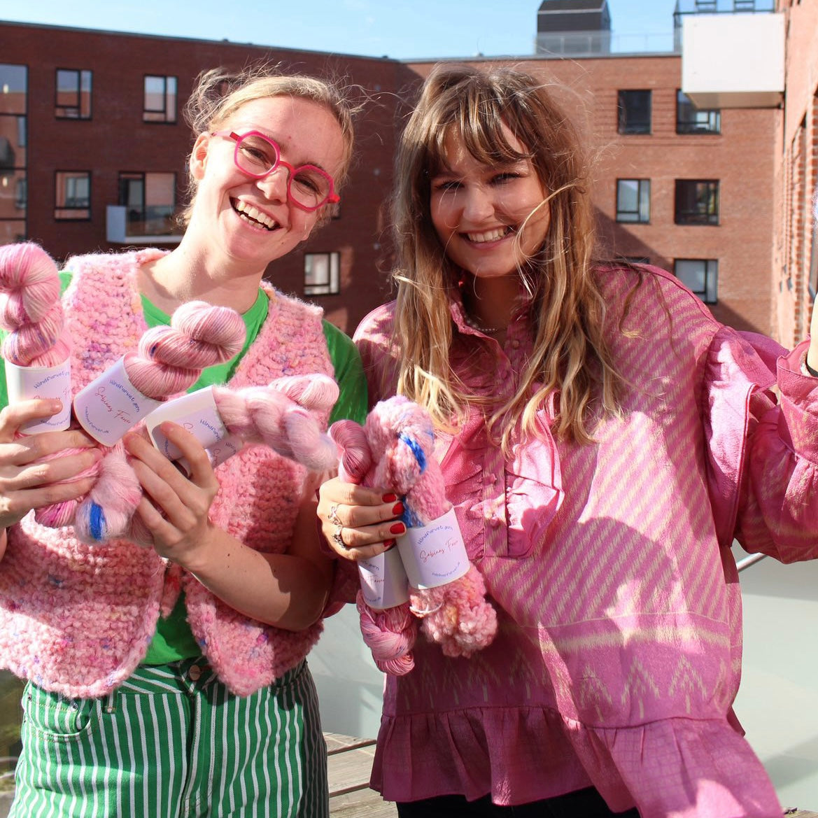 De glade piger Nanna og Matilde fra Garn&Glimmer har sammensat deres helt egen yndlingsfarve, som vi kalder Et Farverigt Venskab