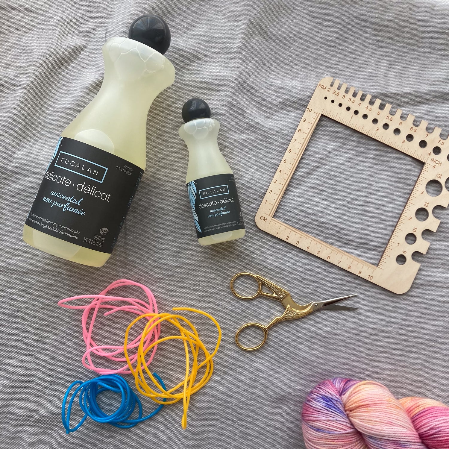 Når jeg farver garn er det vigtigt for mig at gøre processen så skånsom for miljøet som muligt. Jeg vælger kun garnkvaliteter som er mulesingfrie og dyreetisk i orden. Jeg tilrettelægger så vidt muligt mine farveprocesser så jeg har så lidt spild som muligt. Farvemængderne er afmålte så alt farven så vidt muligt optages i garnet og jeg på den måde kan genbruge farvevandet to og ofte flere gange.