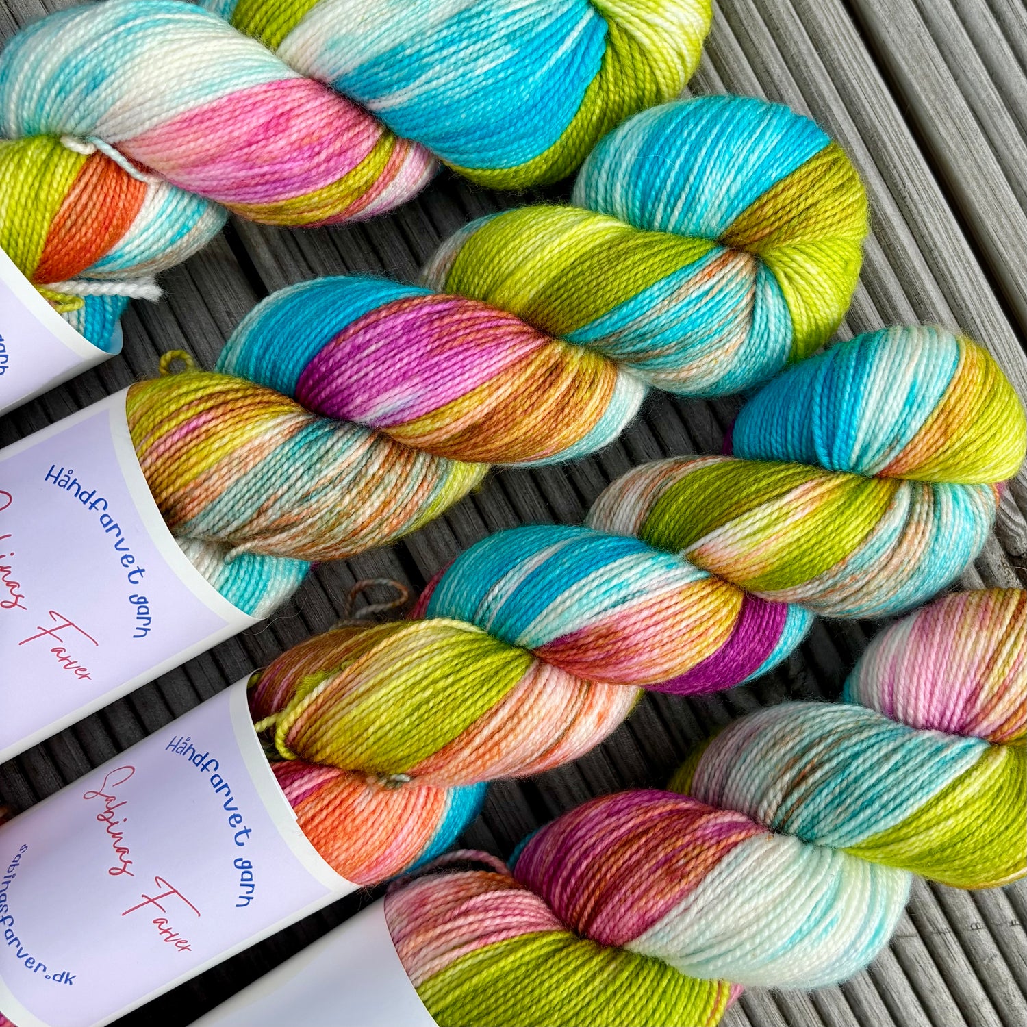 Når du køber håndfarvet garn støtter du typisk lokale, mindre virksomheder. Du køber ind på lige præcis dén garnfarvers stil og personlighed. Du ved at der er lagt tid, energi og håndværk i processen. Mine garnbaser er primært naturfibre i høj kvalitet, og de er nøje udvalgte ud fra hvad jeg selv elsker at strikke. Jeg laver ikke nye farver på bestilling, da det er vigtigt for mig at bevare min nysgerrighed og kreativitet. Det gør jeg kun ved at farve det der taler til mig. Og så håber jeg mit udvalg byder på lige det garn og de farver der også taler til dig.