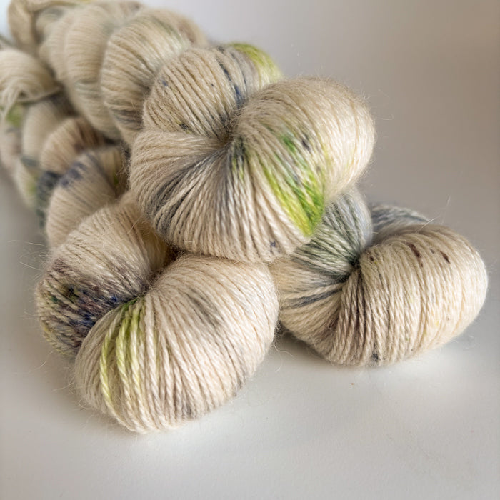 Fiberindhold: 70% baby alpaca, 20% silke, 10% cashmere (non-superwashed)